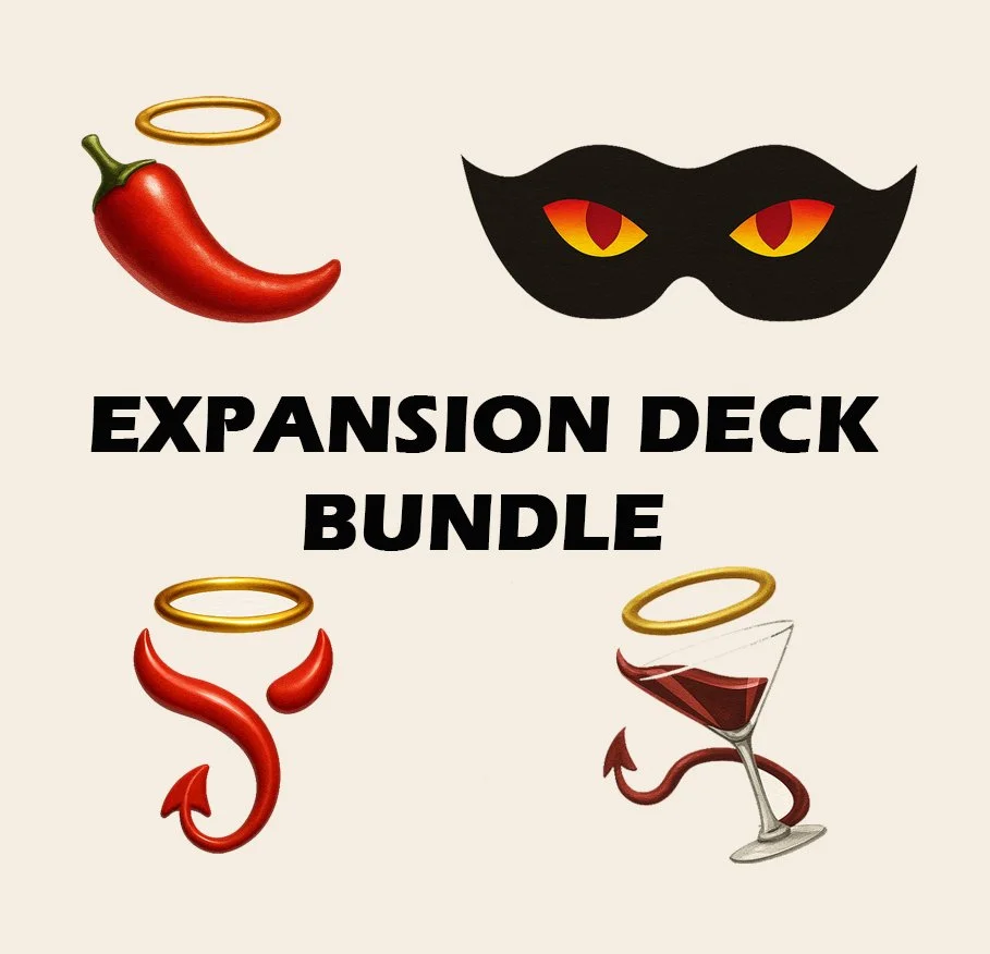 Every Expansion Deck brings its own flavor: Spicy flirts with temptation, Naughty teases with playful mischief, Dirty gets clever and bold, and Filthy dives headfirst into the truly unrestrained.
